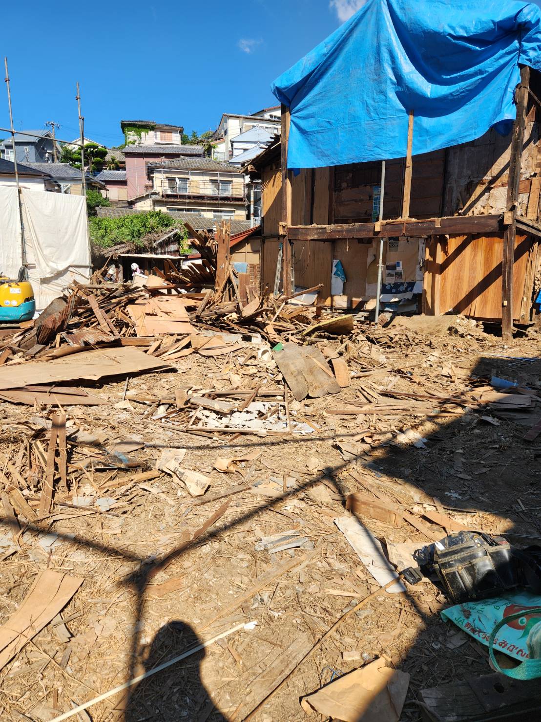 今回は建物解体と隣家との切り離しを行い、整地を完了しましたので、切り離し部の補修を大工さんにバトンタッチしました。