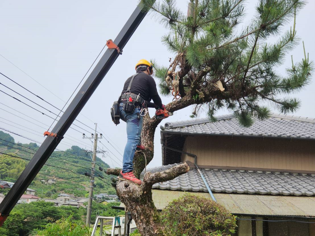 クレーン車などの重機が入れない狭小地や、建物が隣接していて木をまるごと切り倒せないような条件下で行うのが「特殊伐採」です。